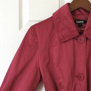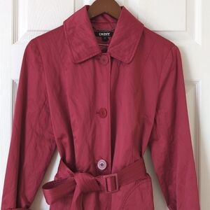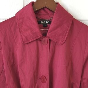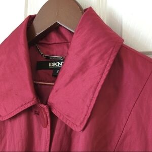 DKNY Y2K Vintage Satin Belted Button Up Midi Length Trench Coat Hot Pink Small