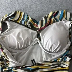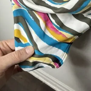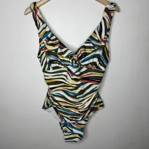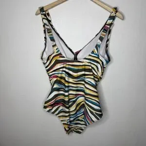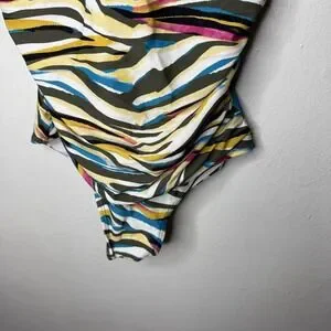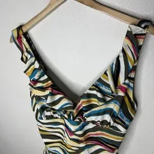 DKNY Zebra Multicolor Stripe Ruffle One Piece Swimsuit Women's 12 Swimming Suit