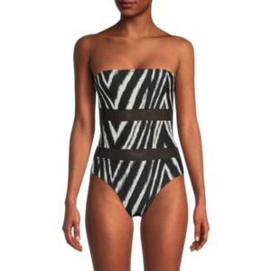DKNY Zebra Print Strapless One Piece Swimsuit Black White Size 10