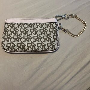 DKNY Baby pink wristlet brand new never been used comes with a chain wristlet and also a slip pocket on the inside super smooth, butteries zipper brand new