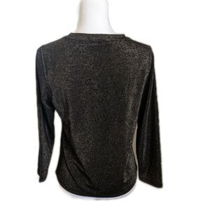 DKNY black & gold stretch metallic sparkle long sleeved t shirt with cutout M