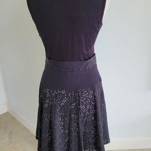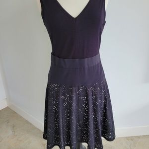 Blk dress knit top side zip cut out detail bottom part of dress. Very flattering fit. Knee length Sz 8