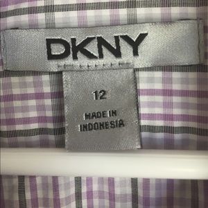Very nice plaid shirt with grey, dark grey and lavender colors. Worn very few times! Smoke free household!