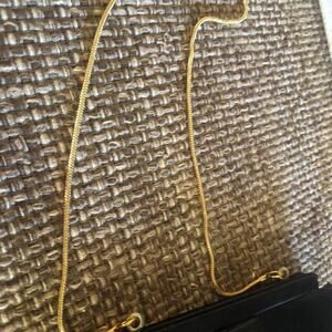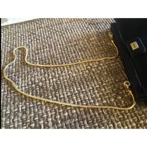 DKNY black satin cocktail bag clutch with gold chain shoulder strap that can be used or tucked in to purse for clutch style purse