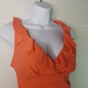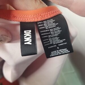 DKNY coral ruffle ruched one piece swimsuit