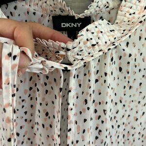 DKNY cream peach sleeveless blouse size L with ruffle sleeves
