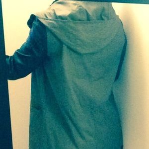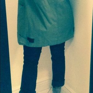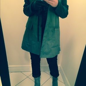Lightly worn. Green thin cotton jacket with lamb leather black sleeves. Beautiful. Never wear. Classic and looks great and perfect on simple black outfit. DKNY