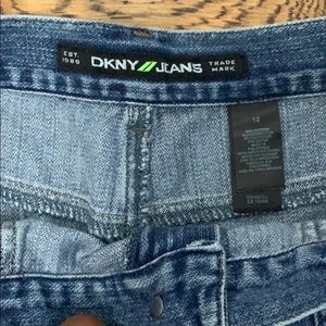 DKNY Jeans mini skirt. 100% cotton, unique functional pockets in the front. The skirt is soft and comfortable. It is 16 inches long total. No stains, rips or tears.