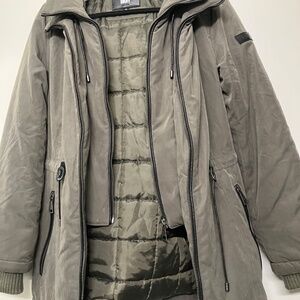 Sub zero temperature warmth! Multiple ways to wear; inner vest zipped; jacket open; or all zipped up and cozy. Removable fur around hood. New without tags (never worn)