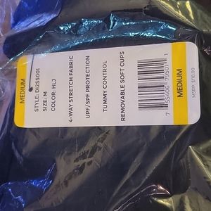 DKNY one piece Black halter shirred waist swimsuit moderate coverage Medium NEW…
