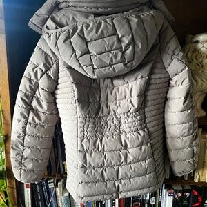 Features: outerwear, puffer, bib-front, light-weight This coat provides an extra outer layer for added warmth and blocking out cold temperatures