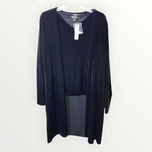 Beautiful black velvet type stretchy material. Long type cardigan and sweater is 3/4 length sleeves. Gorgeous set!