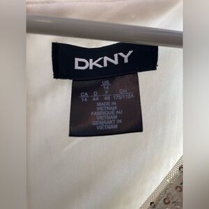 DKNY sequin faux wrap dress cream silver elastic tie waist knee length 14
