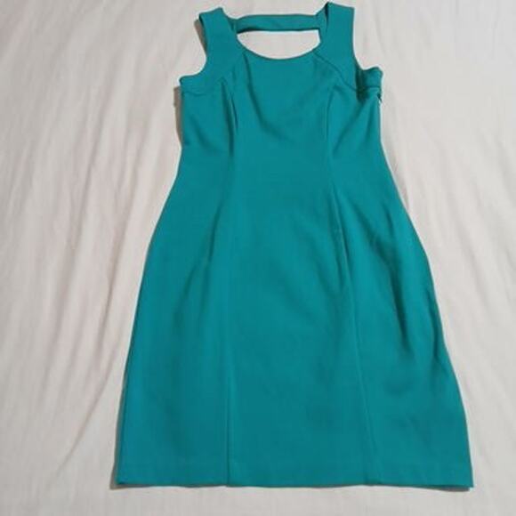 DKNY size 0 aqua sleeveless sheath dress cut out neckline knee length