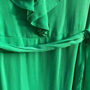 Gorgeous dress in a lovely green that is in style now. Cut on the bias to flatter all shapes. Purchased to wear at a wedding I was unable to attend. Tags cut off but never worn.