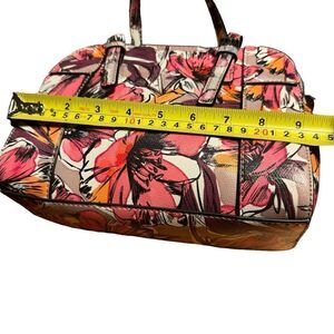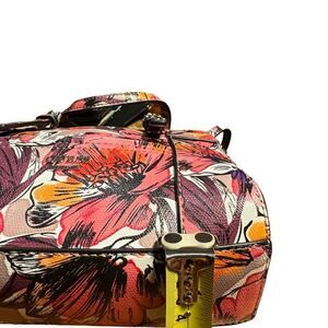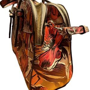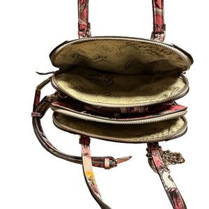 Very gently used. DKNY small crossbody pink flowery design. Gold tone hardware. Three compartments . One internal zipped pocket. 2 credit card slots. One pocket I think it’s for a pocket tissue