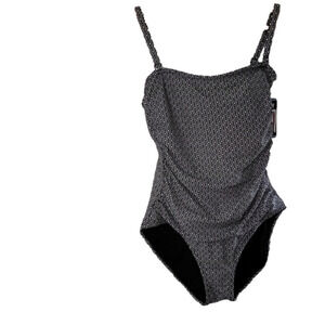 DKNY swimsuit one piece black white tommy control slimming geometric Design Sz.L