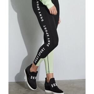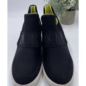 DKNY the Cosmos Logo 3" Hidden Wedge Sneaker Slip On street style Sz 9.5M Black