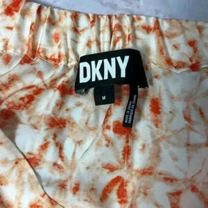 DKNY white and orange tie dye pattern pleated elastic waist maxi skirt size M