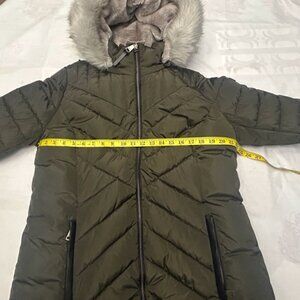 This winter coat is brand new. It was never worn. This coat will keep you warm On the coldest day of the coldest night. The details are in the pics. The measurements are in the pics. It has a faux fur hoodie that can be detached from the coat