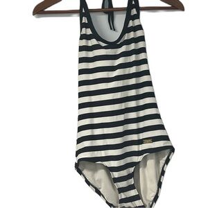 DKNY woman’s halter one piece black and white striped size 6 bathing suit