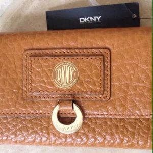 DKNY tan color women wallet, French grain leather retail price $95 new with tag, back zippered pocket 10 Credit cards holder + 4 pockets inside!