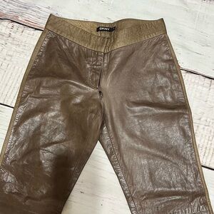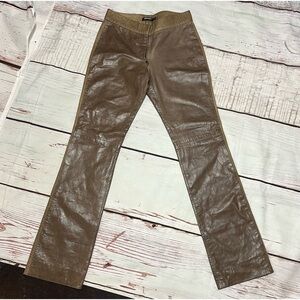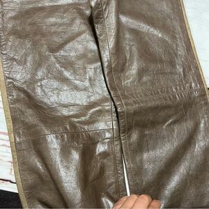 DKNY women’s 100% leather boot cut tuxedo trim pants size 6 Brown Vintage Y2K
