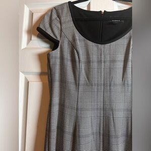 DKNY womens Short Sleeve Godet Knit Check Dress SZ 10