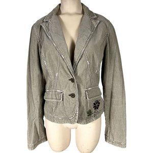 DKNY women's corduroy jacket size M button front, pockets, embroidery