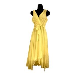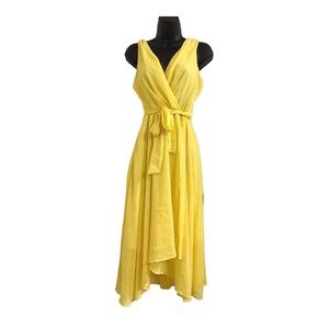 DKNY yellow wispy flowy flirty belted Sleeveless twirled hem wrap Dress size 8