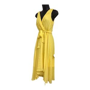 DKNY yellow sleeveless faux wrap Flowy feminine occasion dress size 8