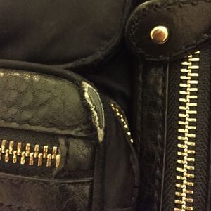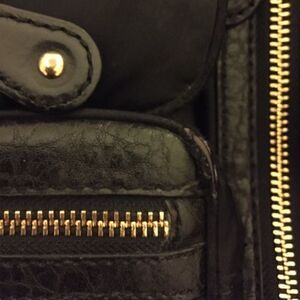 This is a nylon bag with leather trim(crossbody) has multiple compartments perfect for traveling or just running around town. Has one corner that is worn that I touched up as u see, shown in pictures otherwise is in great condition!