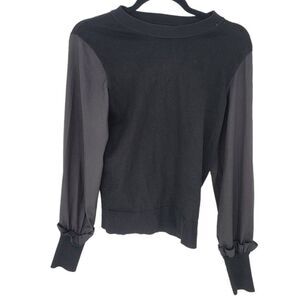 DKNY Black Sweater Womens XS Ruffle Sleeve Crewneck Viscose