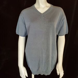 DKNY Blue V-Neck Short Sleeve Shirt (L)