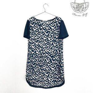 DKNYC / Abstract Pattern Short Sleeve Top Tunic / Dark Blue White Color/ Size S