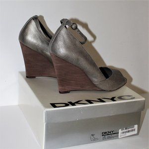 DKNYC Light Gold Metallic Leather Wedge Heel