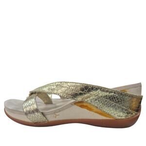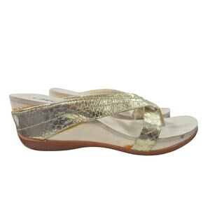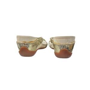 DKNYC Gold Snake Thong Wedge Sandals are very lightweight, Sz 8, in good condition, but there's a glue stain on the inside of one shoe.