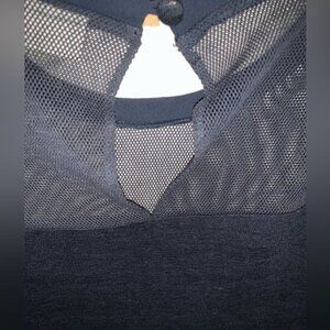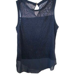 DKNYC Navy Sleeveless Mesh & Chiffon Layered Top S