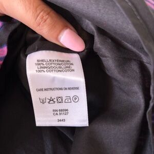 Bold A-line skirt with vibrant patterns. Features purple, pink, and yellow hues. Stylish and eye-catching design. It doesn’t show its size, but I said 12 because of measurements. To be sure, please see measurements below.