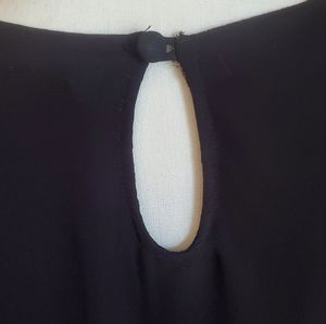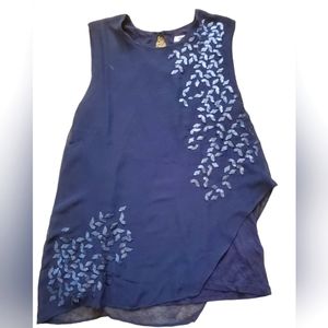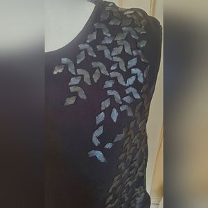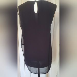 DKNYC med. Black flowy sleeveless blouse faux leather embellishments
