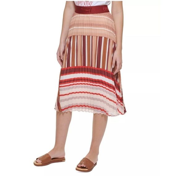 DKNY Chiffon Stripe Print Pleated A-Line Midi Skirt in Multi