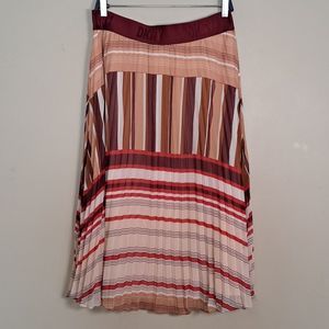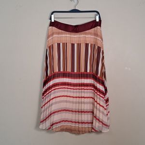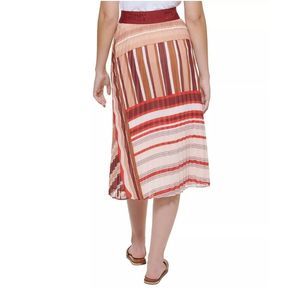 DKNY Chiffon Stripe Print Pleated A-Line Midi Skirt Large