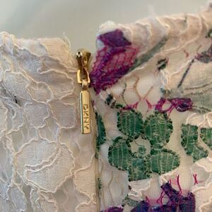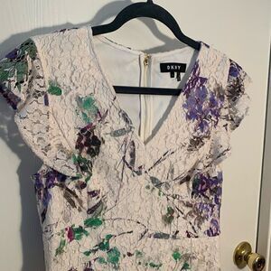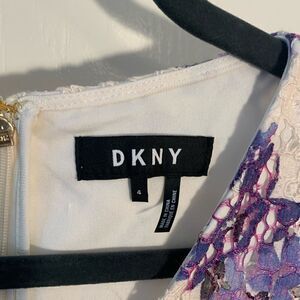 DKNY EUC cream/purple floral lace cap sleeve dress Size 4