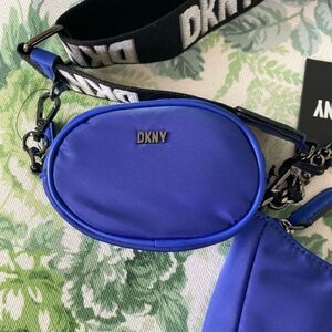 DKNY Electric Blue Cairo MD Pouchette Crossbody Bag with Airpod Case Pouch