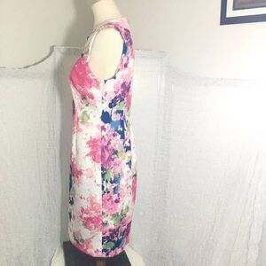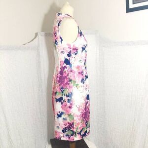Knee length multi-colored floral all over print sheath dress. Back hidden zipper closure. Pre-owned in good condition. Please refer to pictures for best description and condition verification.