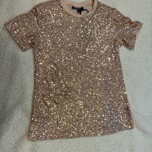 Boasting all-over sequins, this short sleeve top by DKNY will add shimmer and shine to your casual wardrobe.