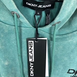 DKNY Hoodie Cropped Green Yellow Tie Dye Left Chest Logo Pullover Drawstring XL