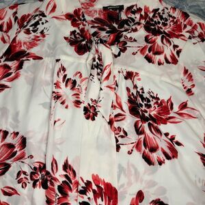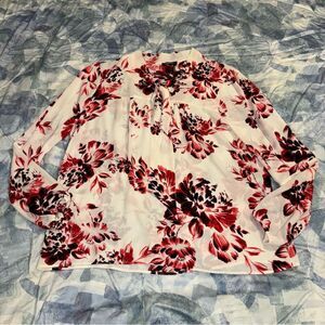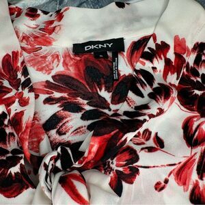 Ivory Floral Print Tie Front Blouse Top- DKNY