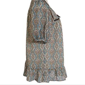 DKNY Jeans Blue Patterned Boho Babydoll Top