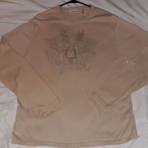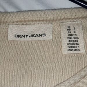DKNY Jeans Mens Sweater Beige Flocked Design Lg